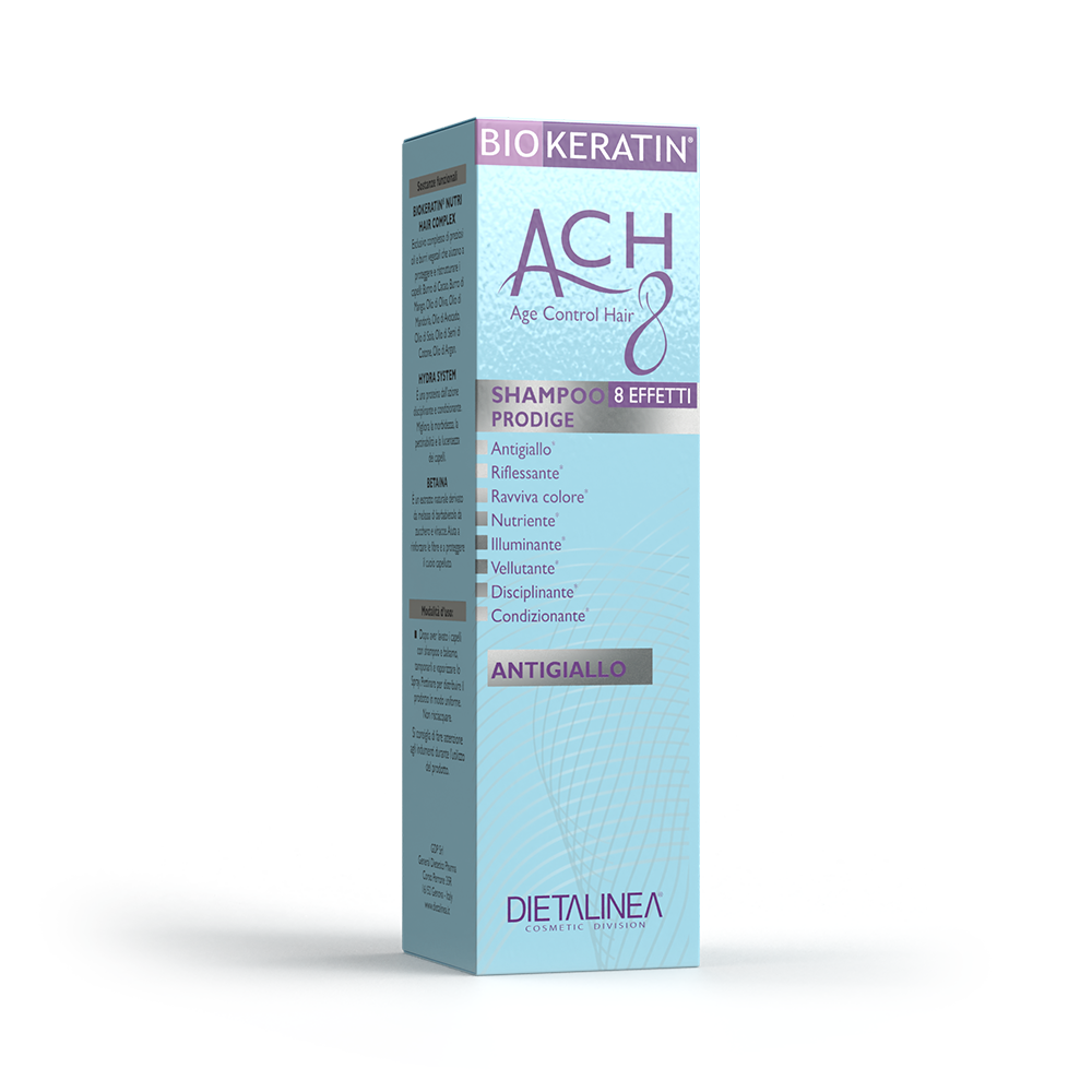 Biokeratin ACH8 Shampoo con Betaina e Hydra System, è formulato per neutralizzare e contrastare l’antiestetica tendenza all’ingiallimento tipico dei capelli decolorati.