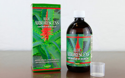Ingredienti: Miele di Acacia, Aleo Arborenscens Mill. foglia intera succo, Brandy 40°, Acerola (Malpighia punicifolia L.) frutto estratto secco (al 50%Vitamina C), Acidificante: acido citrico, Corservanti: Potassio sorbato, Sodio benzoato.
